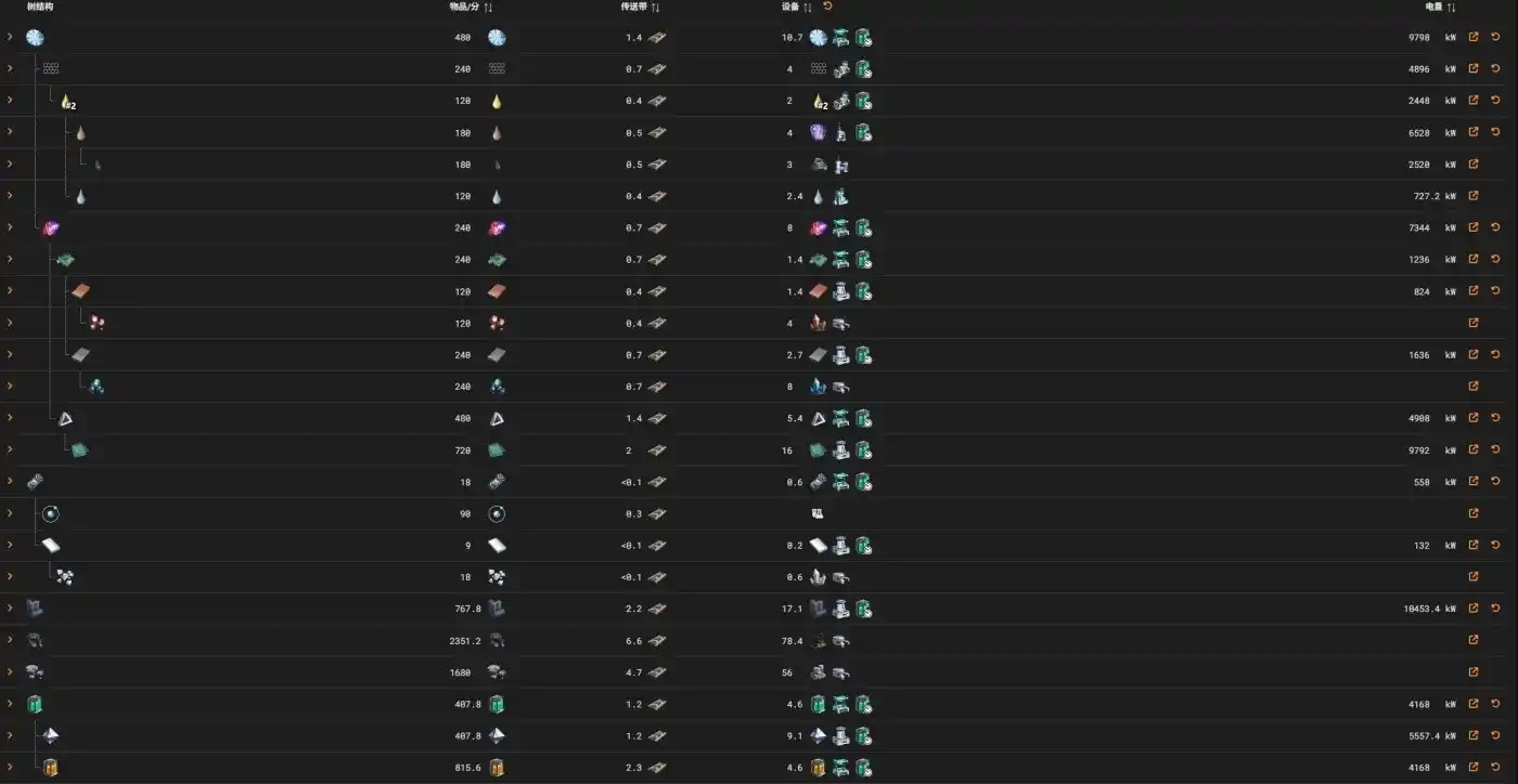在这个游戏里讲究“量化”的计算概念,在你设计一条完整的生产线的时候,你不能一味的去追求“速度”,而是需要精确的计算每个环节所需要的时间,以及你所需物品的产量/min